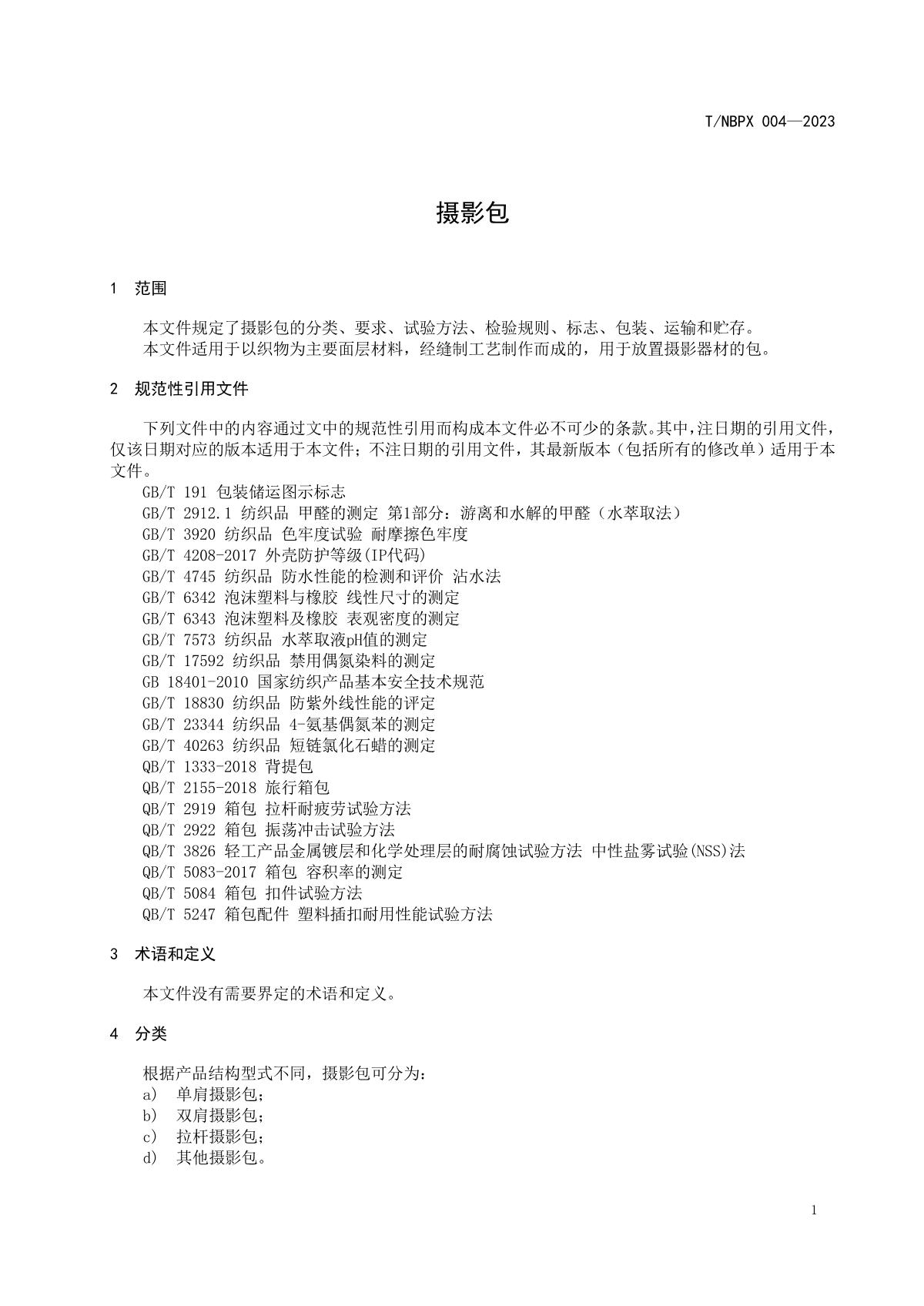 2023年3月30日由寧波市皮革行業(yè)協(xié)會(huì)提出并且歸口,寧波市多家箱包行業(yè)企業(yè)單位共同起草的《攝影包》順利通過(guò)驗(yàn)收,本標(biāo)準(zhǔn)將攝影包的各項(xiàng)參數(shù)作了標(biāo)準(zhǔn)化規(guī)定,有助于企業(yè)提升產(chǎn)品質(zhì)量,降低生產(chǎn)成本,提高產(chǎn)品競(jìng)爭(zhēng)力,同時(shí)也進(jìn)一步促進(jìn)行業(yè)技術(shù)進(jìn)步以及保障消費(fèi)者權(quán)益。